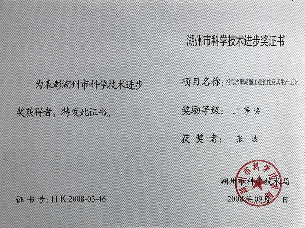 2008湖州市科技進(jìn)步獎(jiǎng)三等獎(jiǎng)-張波